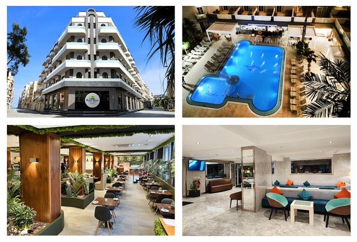 Pebbles Resort offers 231 luxurious bedrooms spread across five floors, just a five-minute walk from the Mediterranean coast. Each room features a flat-screen TV with satellite channels, tea and coffee-making facilities, a private bathroom with a walk-in shower, hairdryer, and complimentary toiletries replenished daily. Guests also enjoy the comfort of air conditioning and central heating, secure electronic door locks, daily housekeeping, and electronic smoke detectors. Rooms come with either a balcony or terrace, offering views of the pool or the city.